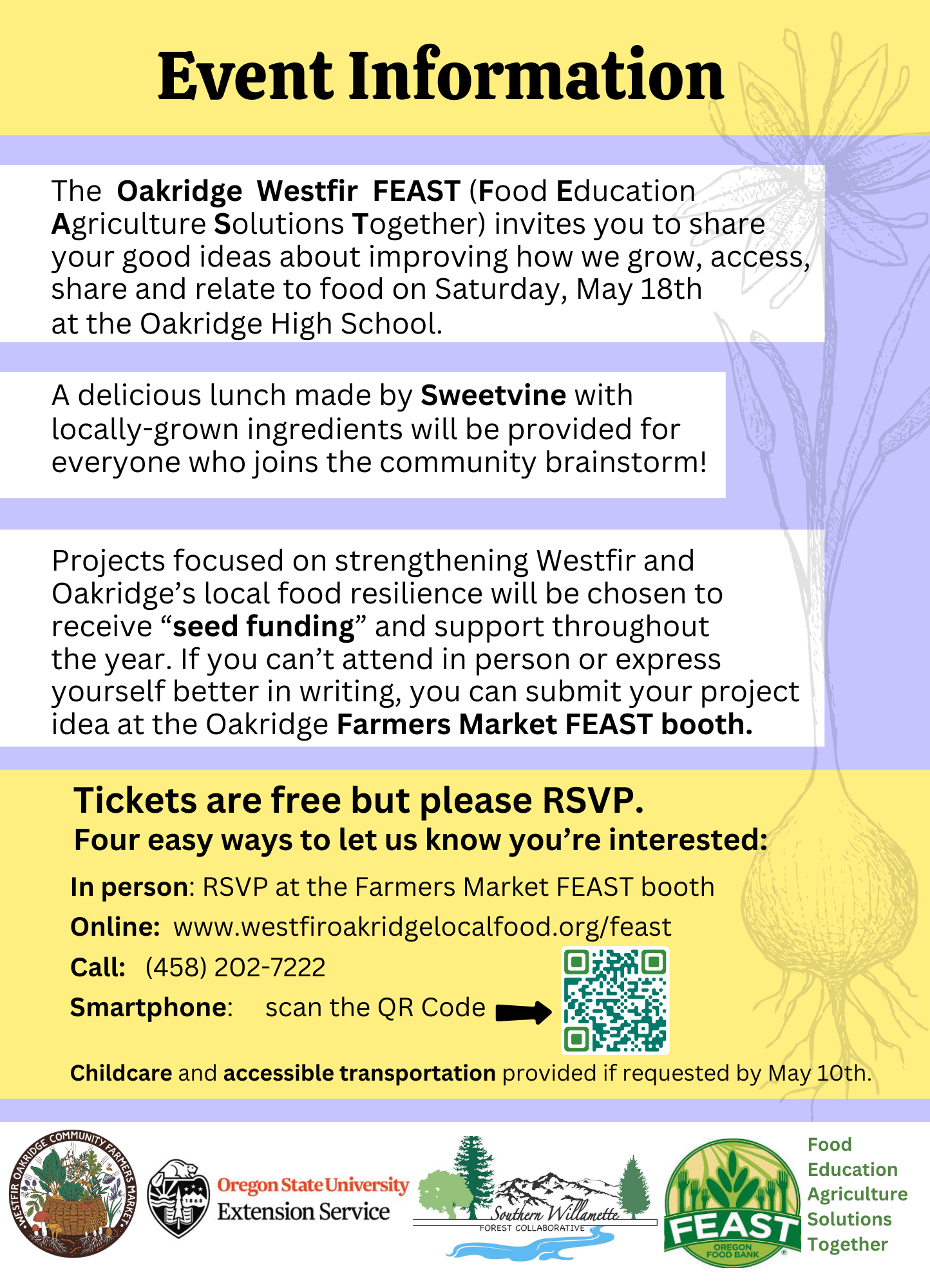 Westfir Oakridge Community FEAST! Share this: Click to share on X (Opens in new window) X Click to share on Facebook (Opens in new window) Facebook Like Loading...